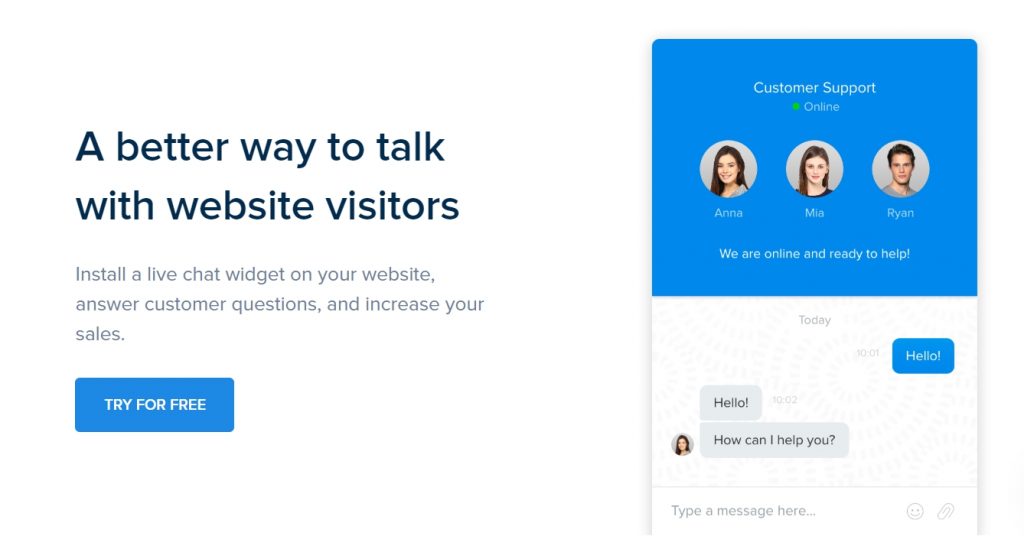 Whether you just want to test out a are platform before upgrading to a platform with more features, or you are looking to find something to stick with long-term, My Live Chat is one of the best free platforms out there. There are a ton of different chat styles to choose from, so you have multiple options depending on your website design and customer interactions. Key features include real time visitor monitoring, the ability to hold multiple sessions at a time, and be able to send pre-crafted responses to questions you get often.