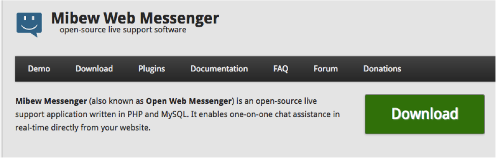 Mibew Messenger, also known as “Open Web Messenger,” is a very simple (and FREE) open-source live support application written in PHP and MySQL. It is a no-frills website, and really a no-frills chat box, but users seem to absolutely love its simplicity. Milbew enables one-on-one chat assistance in real-time directly from your website—and what more do you really need for a free platform?
